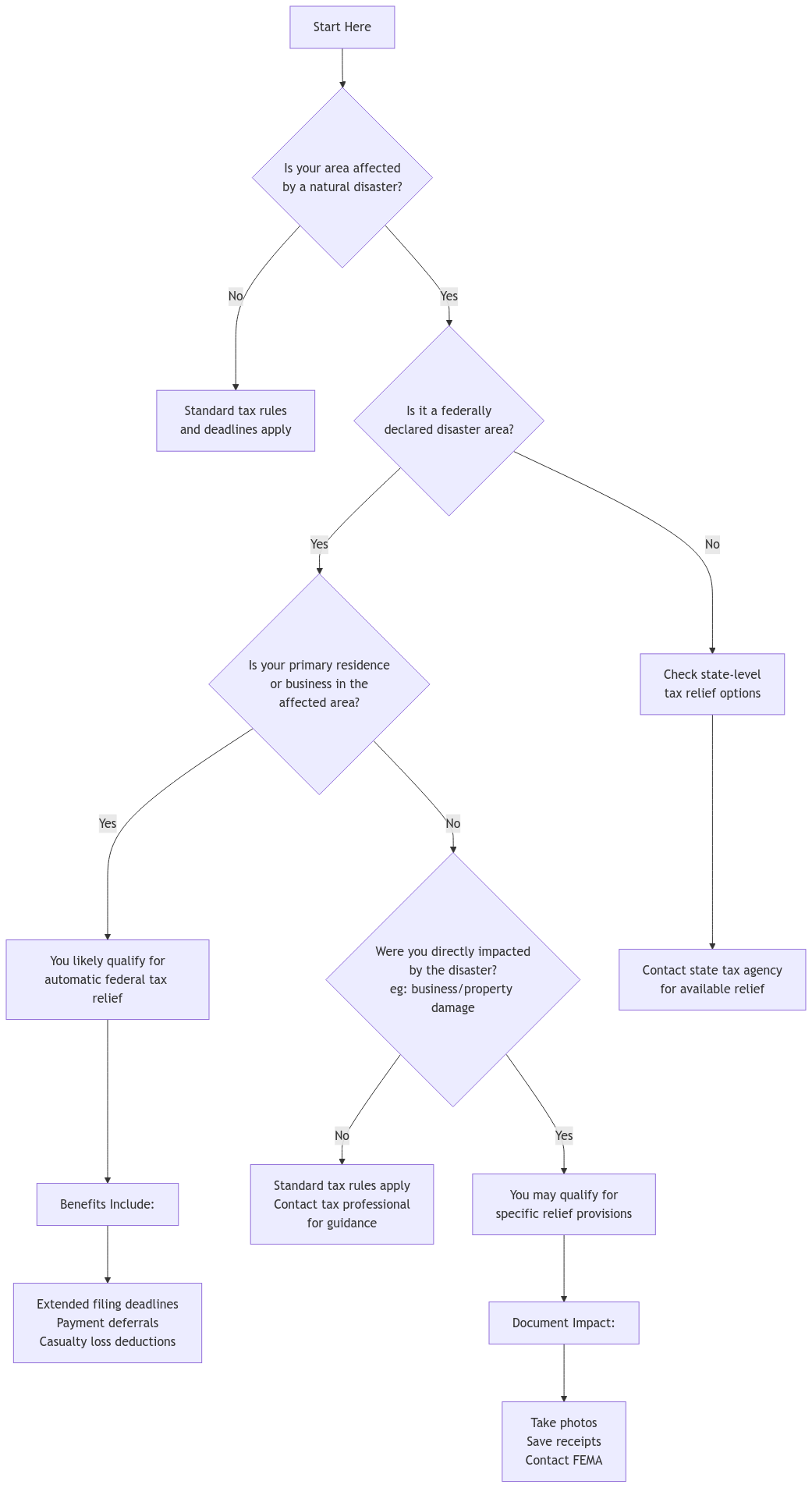- The IRS offers automatic tax relief for those in federally declared disaster areas: Deadlines for filing and payments have been extended, varying by location and disaster.