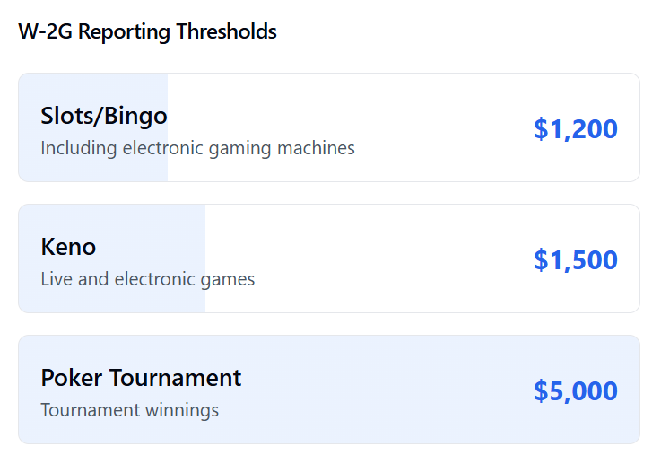 - $5,000 or more in winnings from poker tournaments: This includes winnings from any poker tournament where the payout exceeds $5,000.