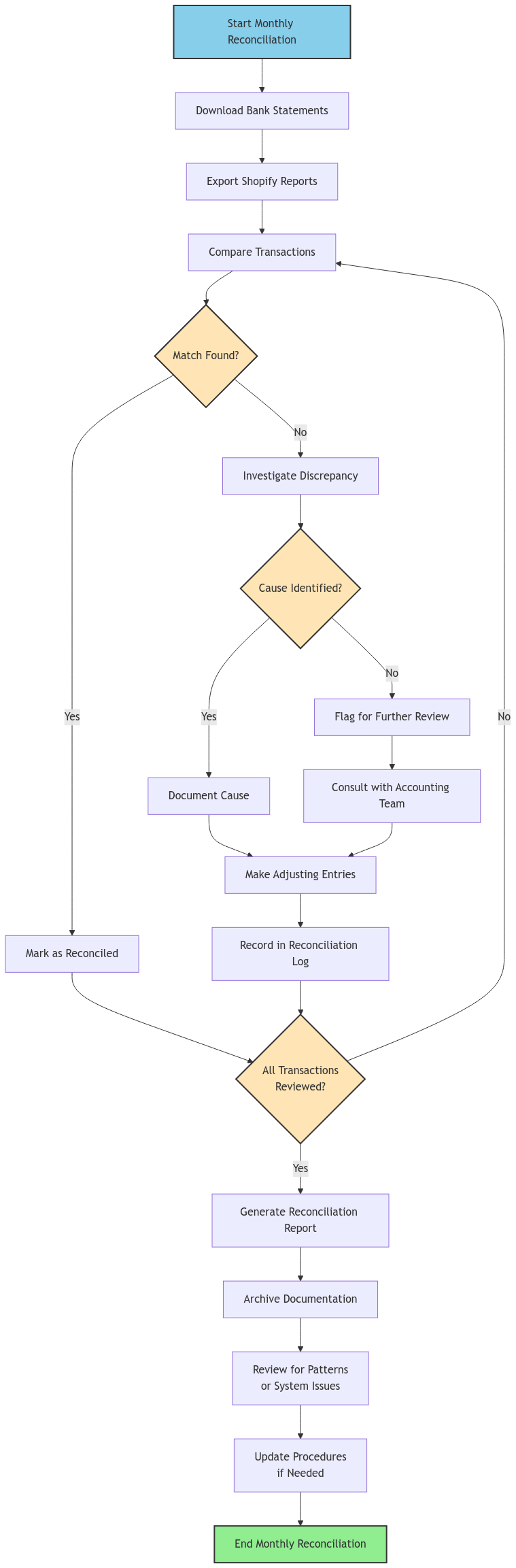 3. Compare and Match: Compare transactions in your bank statements with those in your Shopify reports.