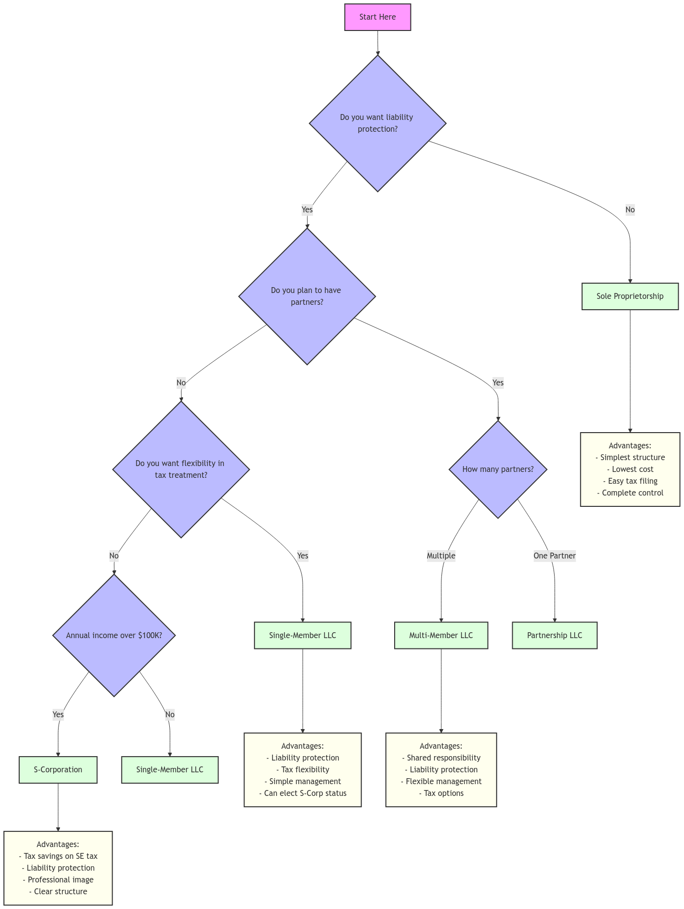 Each structure has different tax implications. Consulting with a tax professional or legal advisor can help you determine the best option for your specific needs.